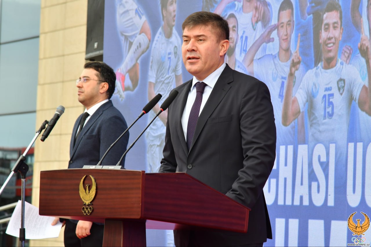 Даставвал, Президент Администрацияси департамент раҳбари Одил Абдурахманов футболчиларимизни Олимпия ўйинларига қўлга киритилган тарихий лицензия билан қутлаб, Президент Шавкат Мирзиёевнинг Ўзбекистон олимпия терма жамоасига йўллаган табригини ўқиб эшиттирди.