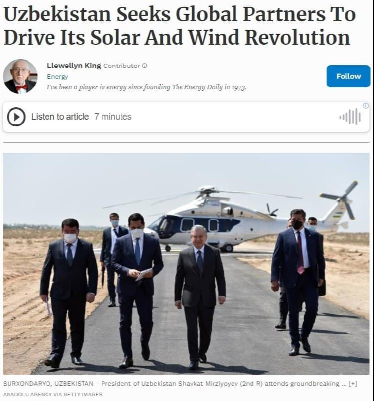 “Улар [Ўзбекистон] атроф-муҳитни асраш ва электр тизимини қайта қуриш бўйича қилаётган ишлари ҳайратланарли ва илҳомлантиради”, дейилади мақолада.