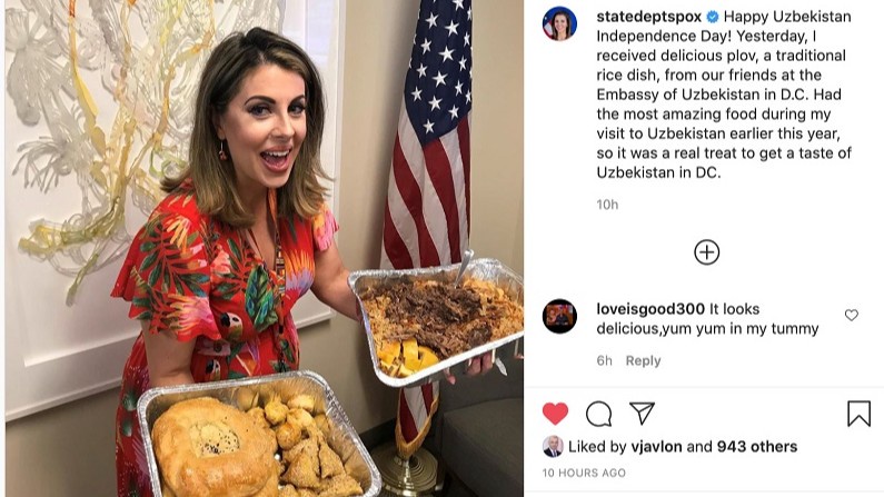 АҚШ Давлат департаменти вакили Морган Ортагус ўзининг «Twitter» ва «Instagram» ижтимоий тармоқларидаги расмий саҳифаларида ўзбек оши учун ўз миннатдорлигини ёзиб қолдирди.
