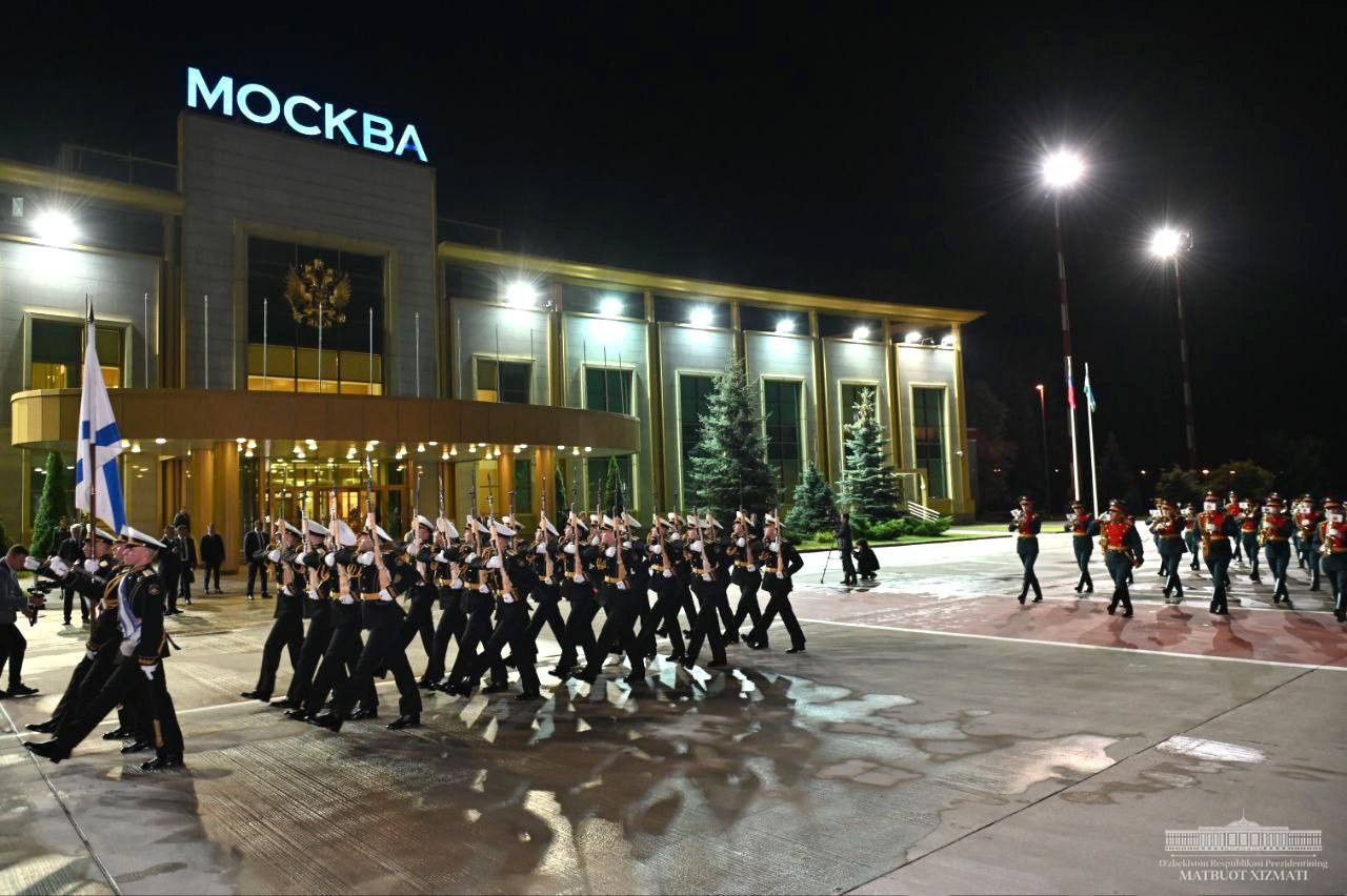 Олий мартабали меҳмон шарафига Ўзбекистон ва Россия давлат байроқлари кўтарилди, фахрий қоровул саф тортди. Тантанали кутиб олиш маросими бўлди.