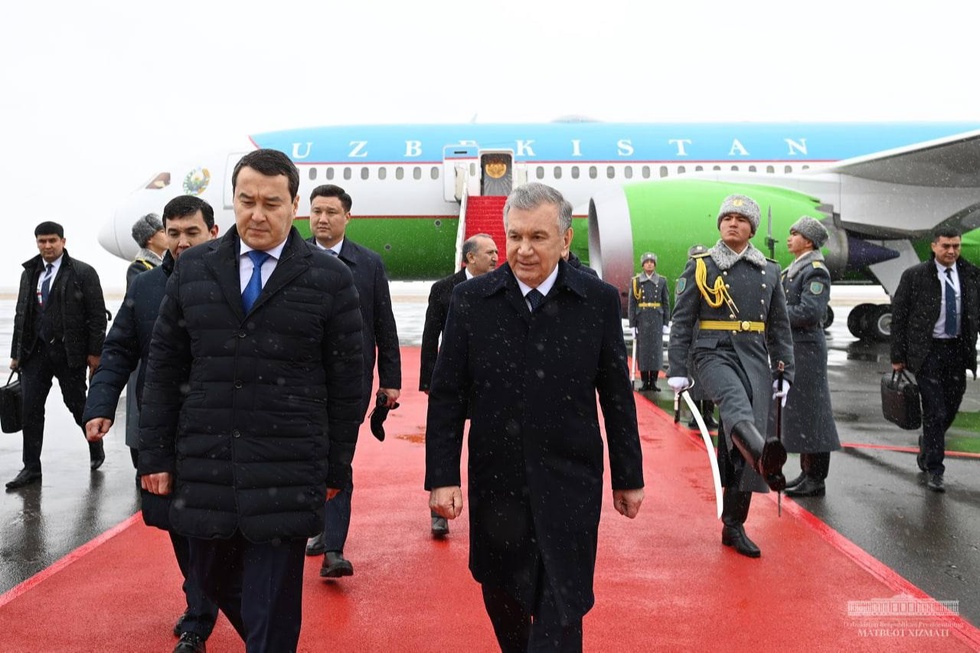 Аэропортда давлатимиз раҳбарини Қозоғистон Бош вазири Алихан Смаилов ва бошқа расмий шахслар кутиб олди.