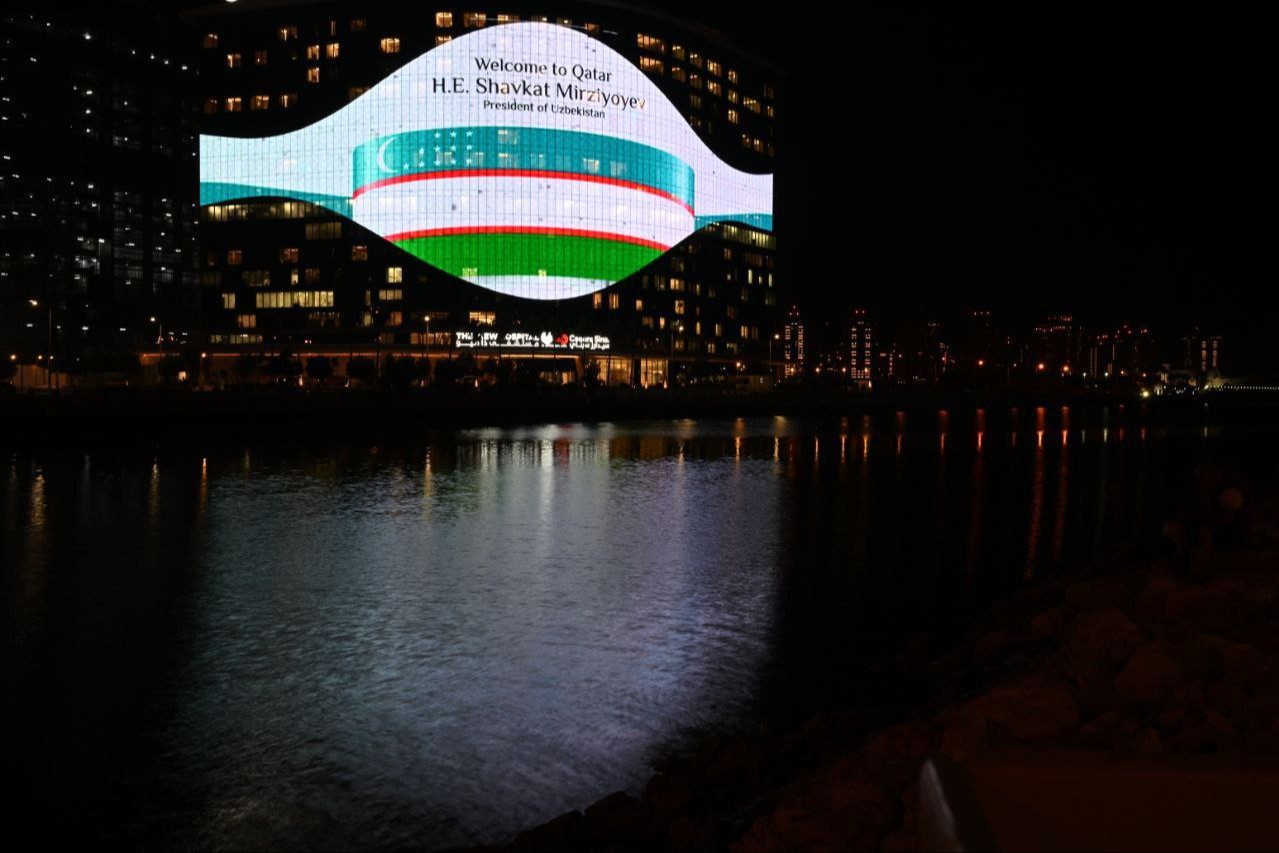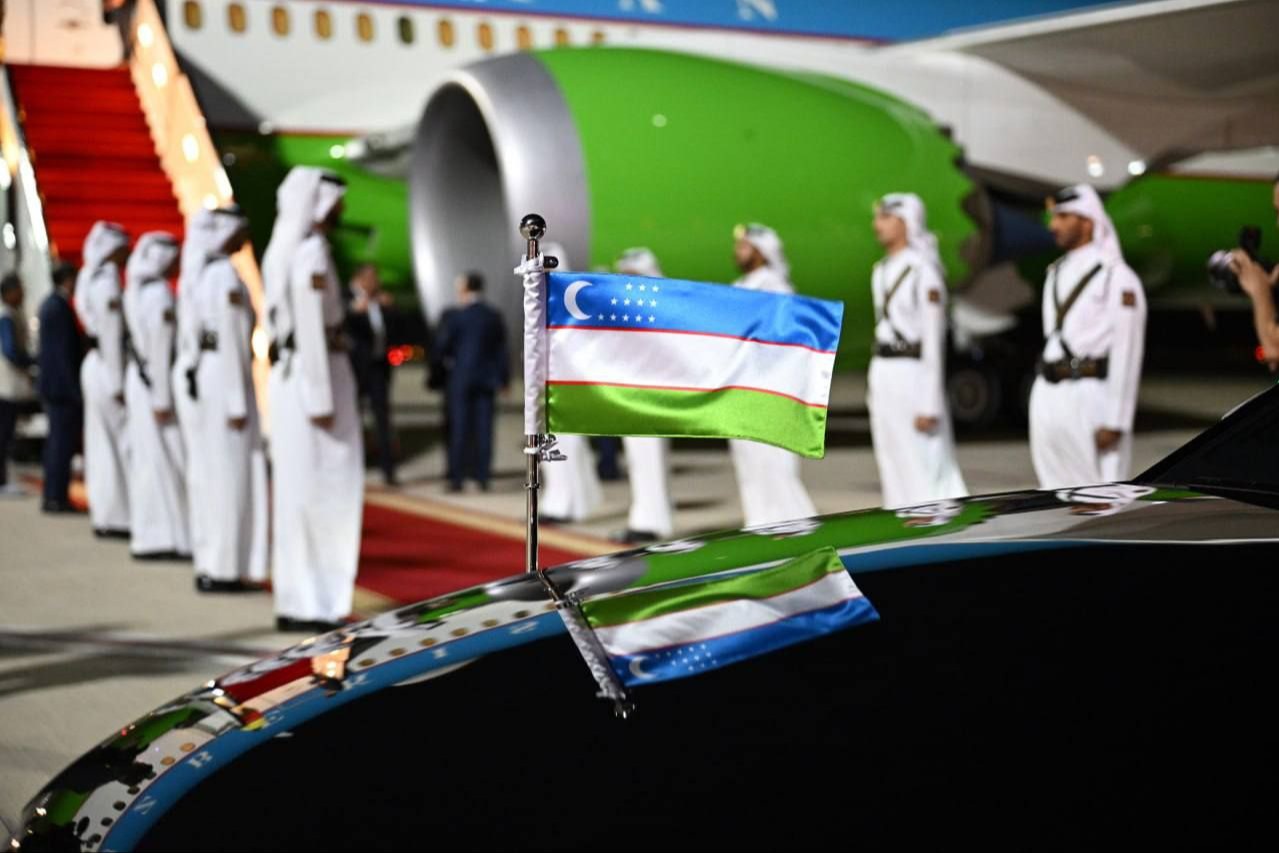 Шайх Ҳамад номидаги халқаро аэропортда олий мартабали меҳмон шарафига фахрий қоровул саф тортди, икки мамлакатнинг давлат байроқлари кўтарилди.
