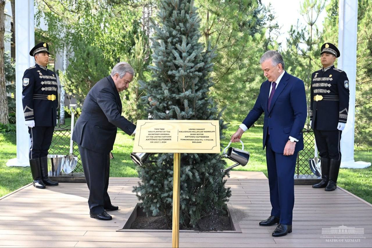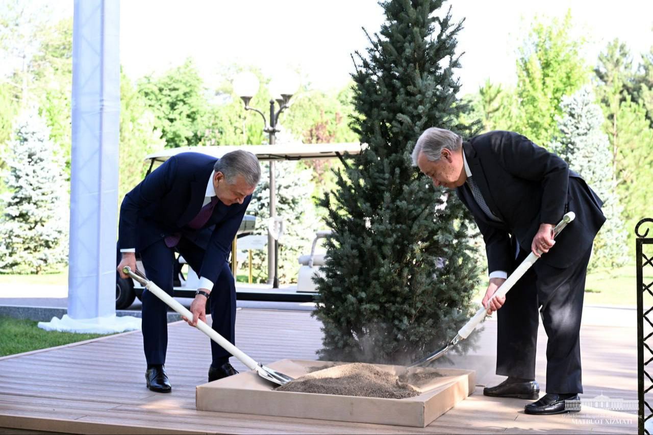 Ўзбекистон Республикаси Президенти Шавкат Мирзиёев ва БМТ Бош котиби Антониу Гутерриш Барқарор ривожланиш мақсадларига эришиш йўлида кенг кўламли ҳамкорликни янада кенгайтириш борасидаги қатъий интилишлар ифодаси сифатида Фахрий меҳмонлар хиёбонида дарахт экдилар.