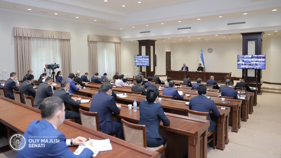 Видеоконференцалоқа тарзида ўтказилаётган ялпи мажлисни Ўзбекистон Республикаси Олий Мажлиси Сенати Раиси Танзила Нарбаева олиб бормоқда.