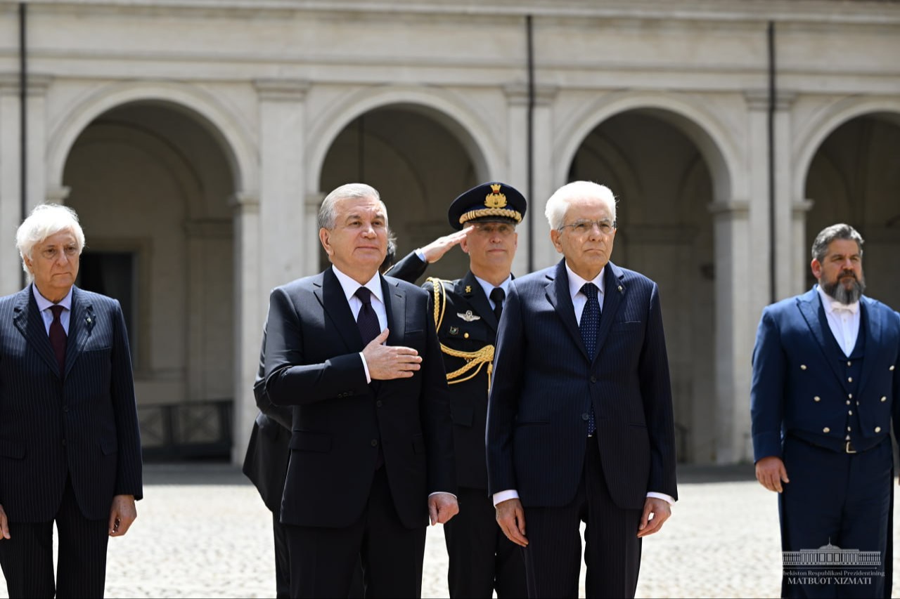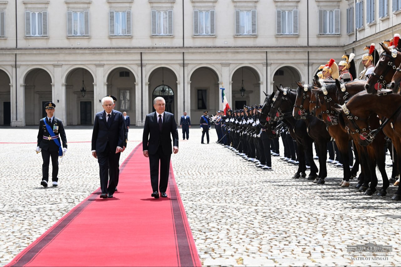 Сарой олдидаги майдонда олий мартабали меҳмон шарафига фахрий қоровул ҳамда отлиқ гвардия аскарлари саф тортди. Квиринал саройининг минорасида Италия, Ўзбекистон ва Европа Иттифоқи байроқлари кўтарилди.