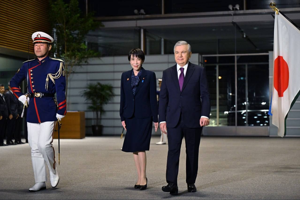 Япония Бош вазири Санаэ Такаичи давлатимиз раҳбарини самимий кутиб олди ва шоҳсупага таклиф қилди.