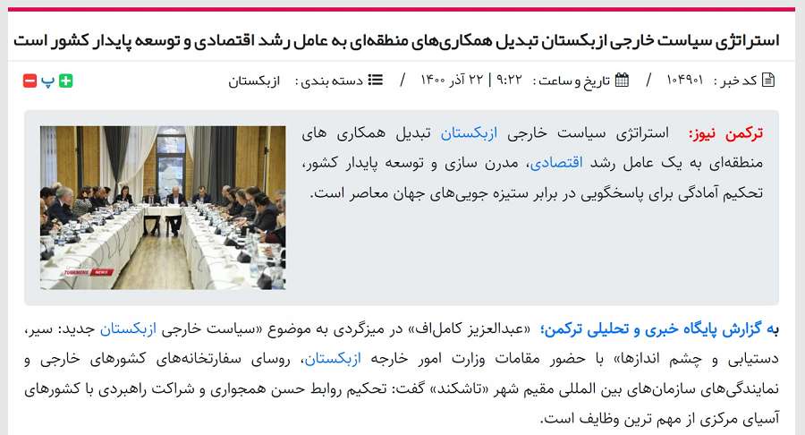 Мақолада 10 декабрь куни Тошкентда “Янги Ўзбекистон ташқи сиёсати: суръати, ютуқлари ва истиқболлар” мавзусида давра суҳбати ўтказилгани ва унда Ўзбекистон ташқи ишлар вазири Абдулазиз Комилов, хорижий давлатларнинг дипломатик ваколатхоналари ва мамлакатда аккредитациядан ўтган халқаро ташкилотлар ваколатхоналари раҳбарлари иштирок этгани хабар қилинган.