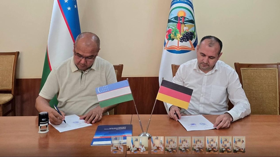 Академик М. Мирзаев номидаги Боғдорчилик, узумчилик ва виночилик илмий-тадқиқот институти Германиянинг Халқаро Ҳамкорлик Жамияти (GIZ) билан «Марказий Осиёда иқлим хавфини бошқариш» лойиҳаси доирасида Англашув меморандумини имзолади.