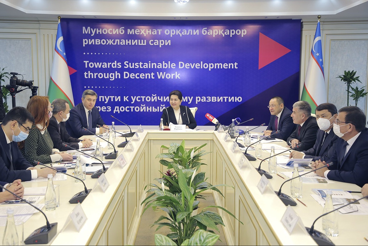 Хусусан, меҳмон иштирокчилар вакилларидан бири — Халқаро меҳнат ташкилоти бош директори ёрдамчиси Х.Коллер муҳим аҳамиятга эга бўлган ушбу тадбирни ташкил этгани учун Ўзбекистонга миннатдорчилик билдириб, пандемия барча соҳаларга салбий таъсир кўрсатаётган бир вақтда, меҳнат муносабатларини қўллаб-қувватлаш долзарб эканини таъкидлади. Олий Мажлис Сенати раиси Танзила Норбоева кириш сўзи билан очиб берган давра суҳбатида Халқаро меҳнат ташкилотининг Европа ва Марказий Осиё мамлакатлари бўйича минтақавий бюроси директори раҳбарлигидаги делегация, БМТнинг Ўзбекистондаги лойиҳалари раҳбарлари, бир қатор нуфузли халқаро ташкилотларнинг юртимиздаги вакиллари ҳамда маҳаллий вазирлик, ташкилотлар мутасаддилари иштирок этди.