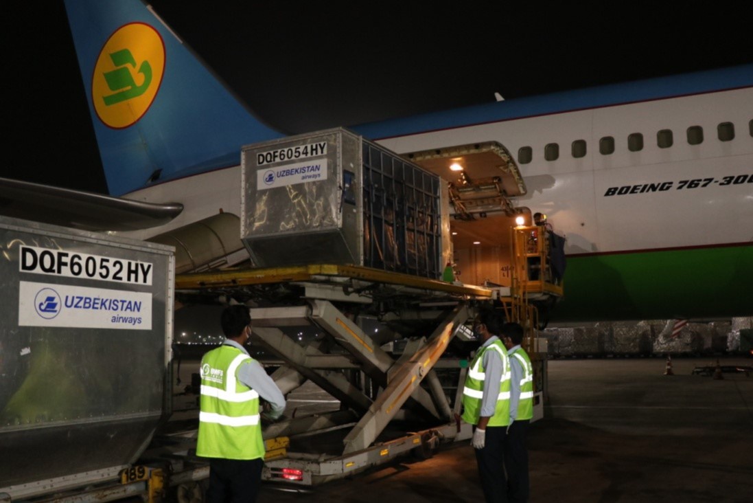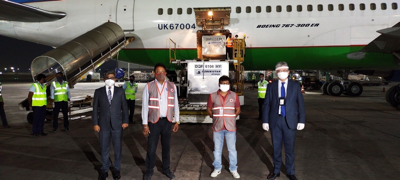 Мобил кислород концентраторлари тўпламлари, эҳтиёж юқори бўлган турли дори воситаларидан таркиб топган инсонпарварлик юклари Деҳли аэропортида мамлакатимизнинг Ҳиндистондаги элчиси Дилшод Аҳатов томонидан мазкур мамлакат Қизил хоч жамияти ва Ташқи ишлар вазирлиги расмий вакилларига топширилди.