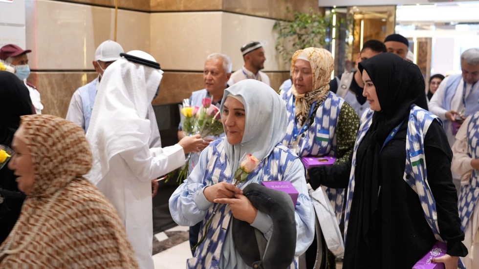 Шунингдек, ҳамюртларимиз муҳташам “Зам-зам Пуллман” меҳмонхонасига киришлари биланоқ илиқ қарши олиниб, зам-зам сувлари, хурмо, ширинликлар ва ҳадялар улашилиб, гуллар ила икром қилинди.