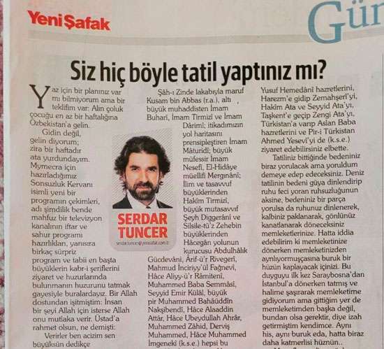 Сердар Тунжер ўз мақоласи интиҳосида Ўзбекистон бўйлаб зиёрат ниҳоясига етгач, одам “чарчадим”, дейишга андиша қилишини, жисм бироз толиққан бўлса-да, руҳ ором топишини, инсон қалби пок, кўнгли қанот ёзган ҳолда она шаҳрига қайтишини алоҳида қайд этади. “Сиз ортингизга қайтганингизда ўзингизни гўё Ватанингиздан ўзга юртга кетаётгандек ҳис қиласиз”, - деб ёзади у.