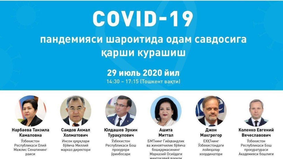 Тадбир давомида COVID-19 пандемиясига қарши курашда эришилган натижалар хусусида сўз юритилди. Коронавирус инқирози шароитида одам савдосининг янги турлари пайдо бўлиши омиллари ҳамда оқибатлари муҳокама қилинди.