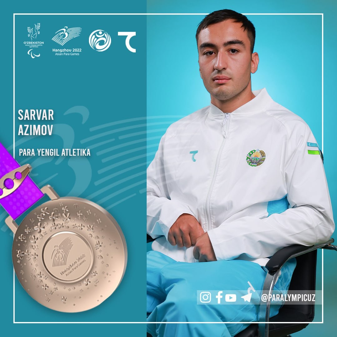 Шунингдек, пара енгил атлетиканинг эркаклар ўртасида F32 классида клаб улоқтириш бўйича баҳслар якунланди. Унда иштирок этган ҳамюртимиз Сарвар Азимов 39.13 метр натижа билан бронза медалини қўлга киритди.