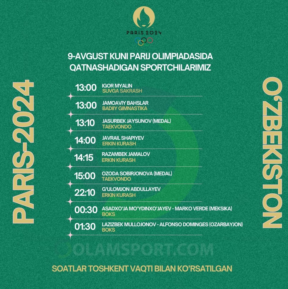 Кун давомида қуйидаги спортчиларимиз баҳсларда иштирок этади: