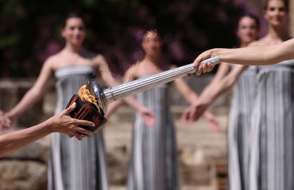 Тадбирда Греция президенти Катерина Сакелларопулу, Халқаро Олимпия қўмитаси президенти Томас Бах, мусобақа ташкилий қўмитаси ва Париж шаҳри мерияси раҳбарлари, шунингдек, бошқа мартабали шахслар иштирок этишди.