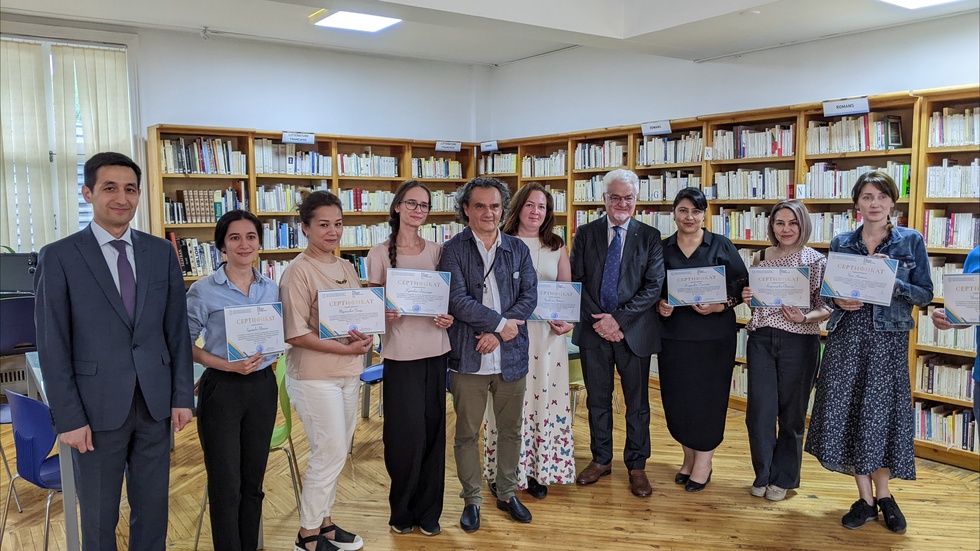 А. Авлоний миллий-тадқиқот институти директори Аюбхон Раджиев ҳамда Франция элчихонасининг таълим ҳамкорлиги бўйича минтақавий атташеси Серж Беллини иштирокида қатнашчиларга сертификатлар топширилди.