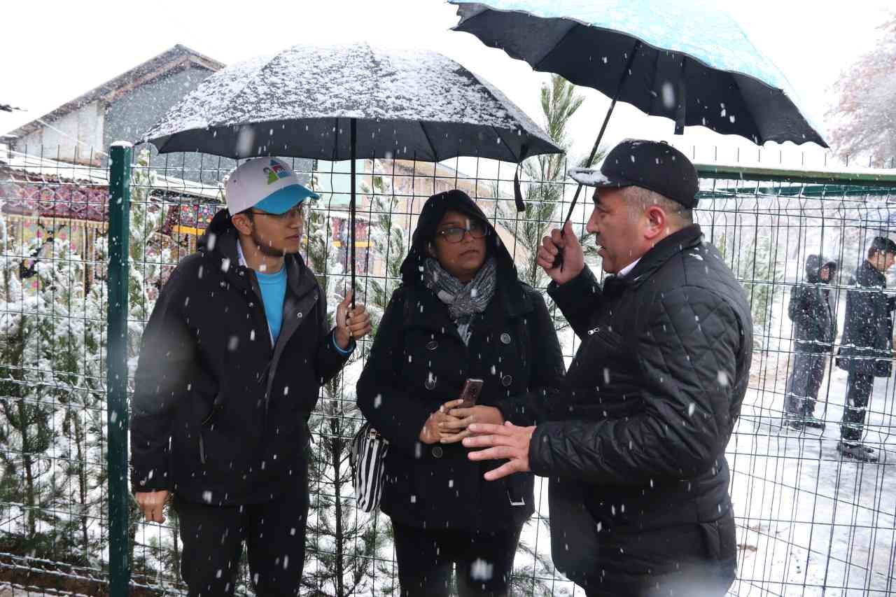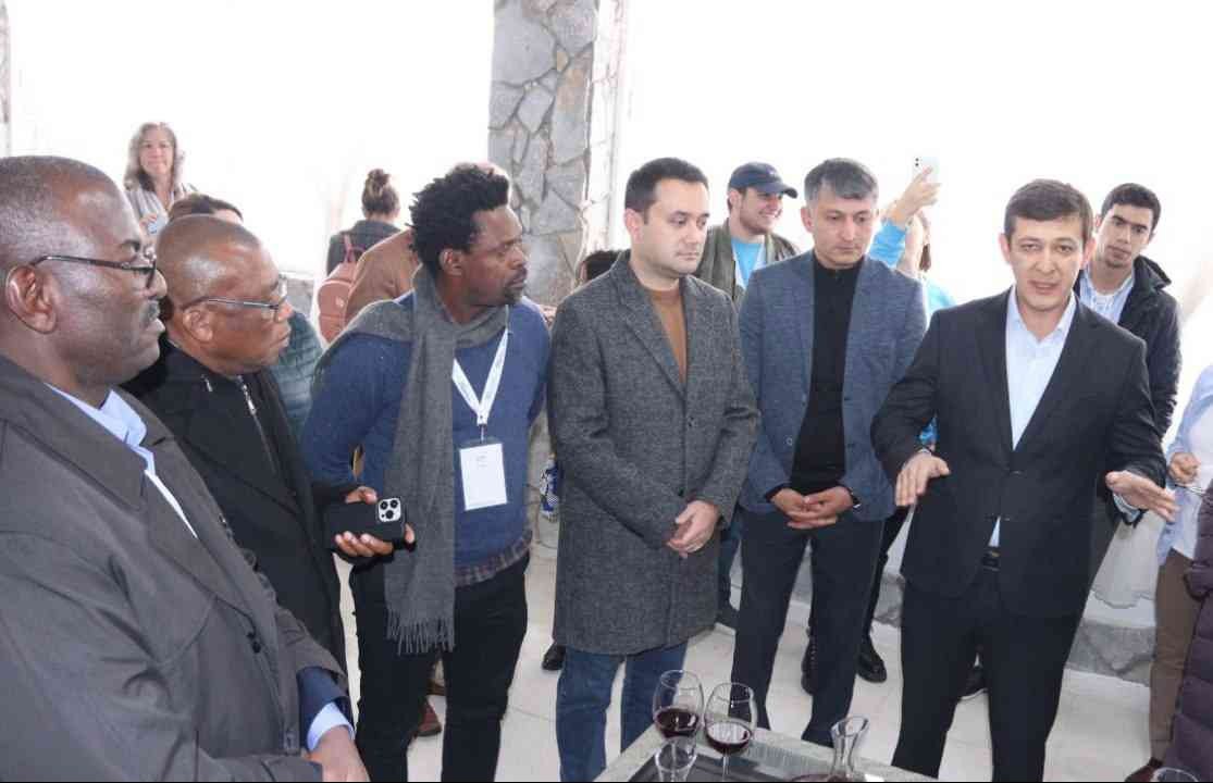 Туман сектор раҳбарлари иштирок этган тадбирда ҳоким Шоҳрух Шоаҳмедов меҳмонларга туманимизнинг узумчилик ва туризм салоҳияти ҳақида инглиз тилида гапириб берди.