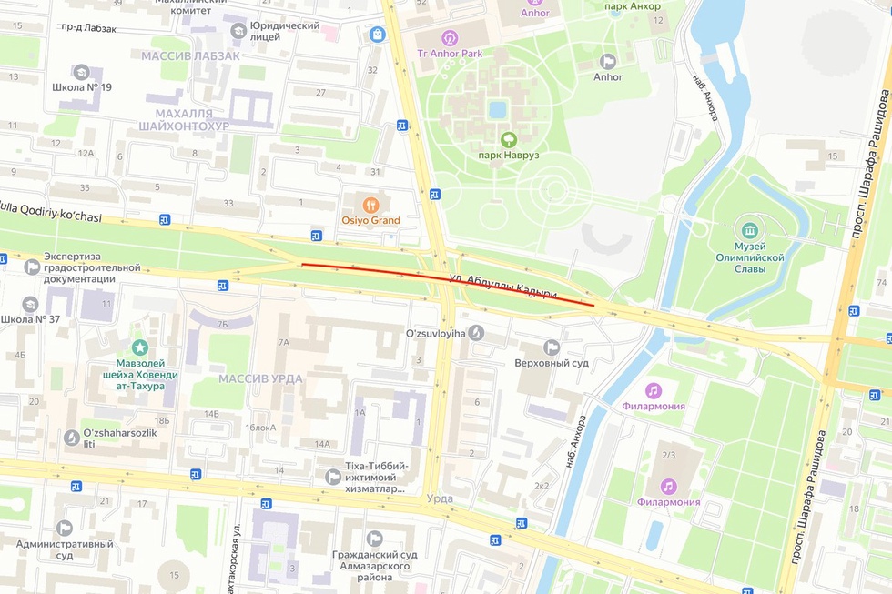 Тошкент шаҳрининг Абдулла Қодирий ва Шайхонтоҳур кўчалари кесишмасидаги кўприк 24 майгача (шу куни ҳам) транспорт ҳаракати учун ёпилди.