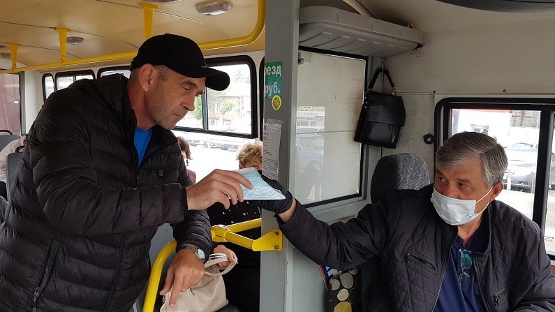 Бунда ташувчилар томонидан жамоат транспорти йўловчиларига қўлқоплар бепул тақдим этилади.