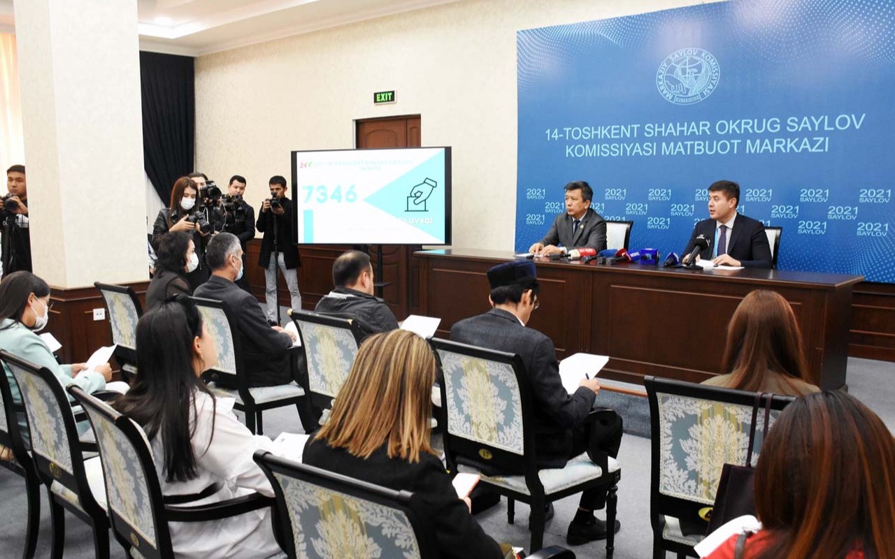 Пресс-тур бўйича дастлабки манзил Тошкент шаҳри Мирзо Улуғбек туманида жойлашган 14-Тошкент шаҳар округ сайлов комиссияси бўлди. Бу ерда округ сайлов комиссияси аъзолари томонидан сайловни ўтказиш бўйича тақдимот бўлиб ўтди.