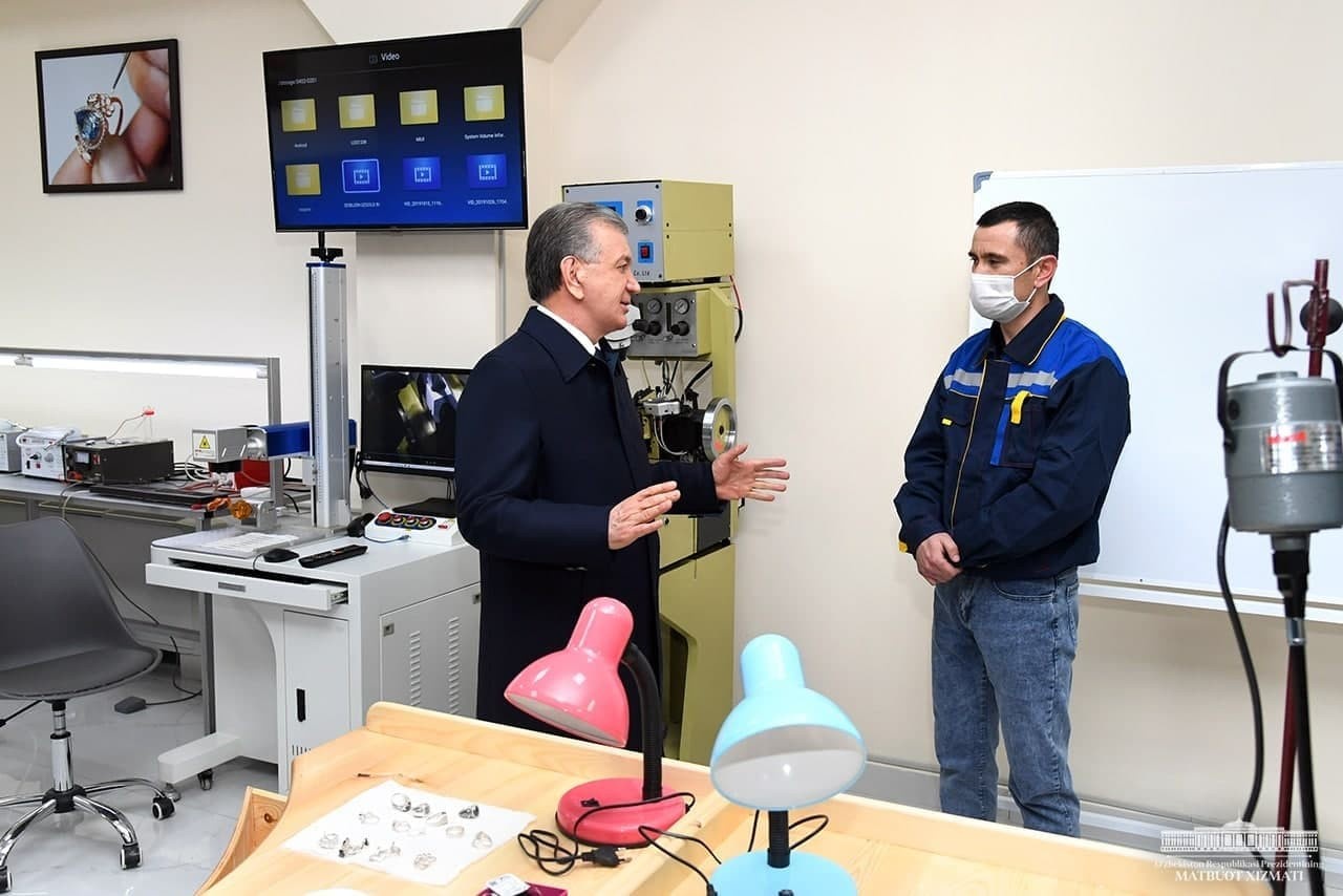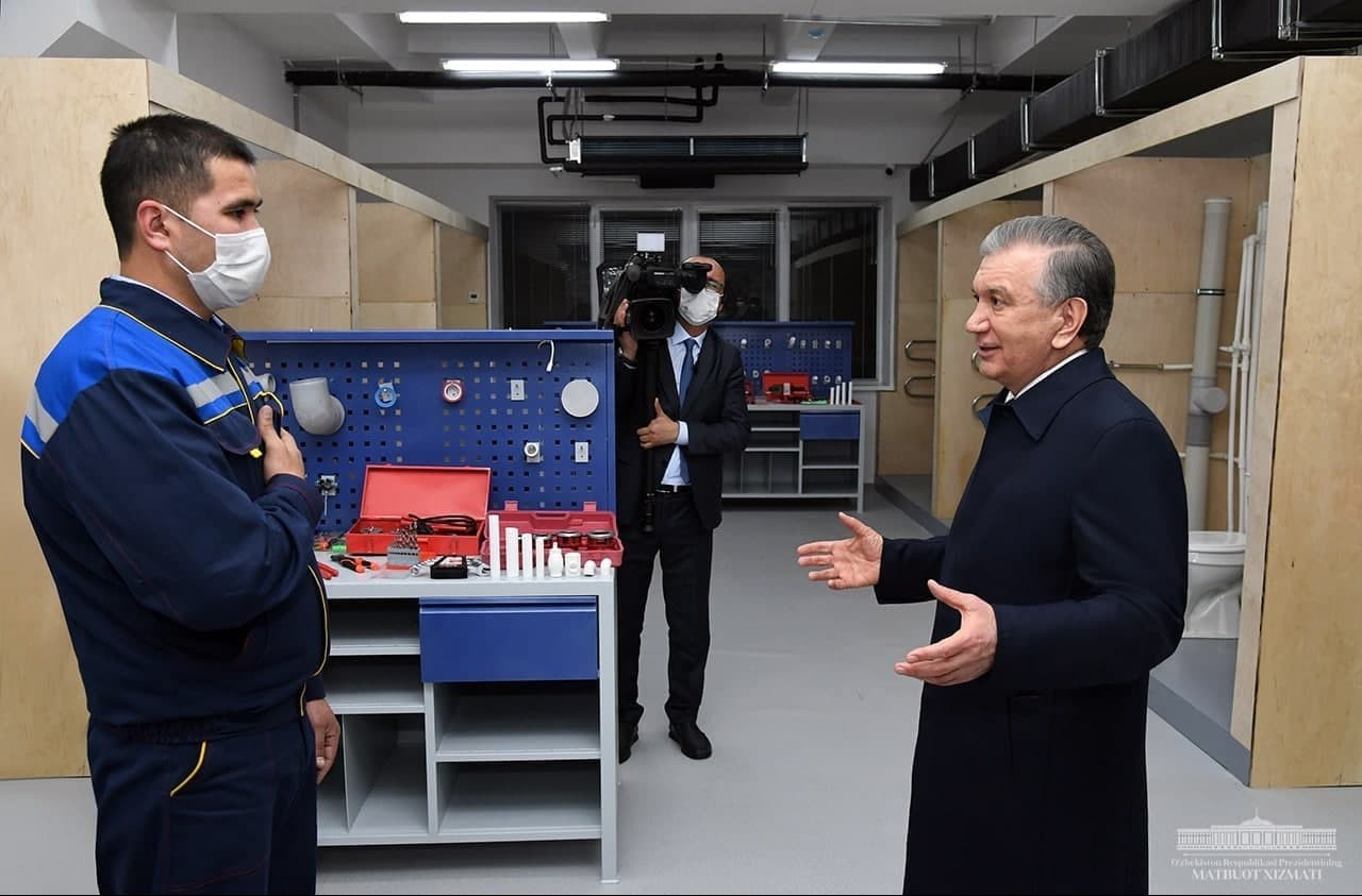 Президентимиз марказда яратилган шароитлар билан танишди, мураббийлар, касб ўрганаётган ёшлар билан суҳбатлашди.