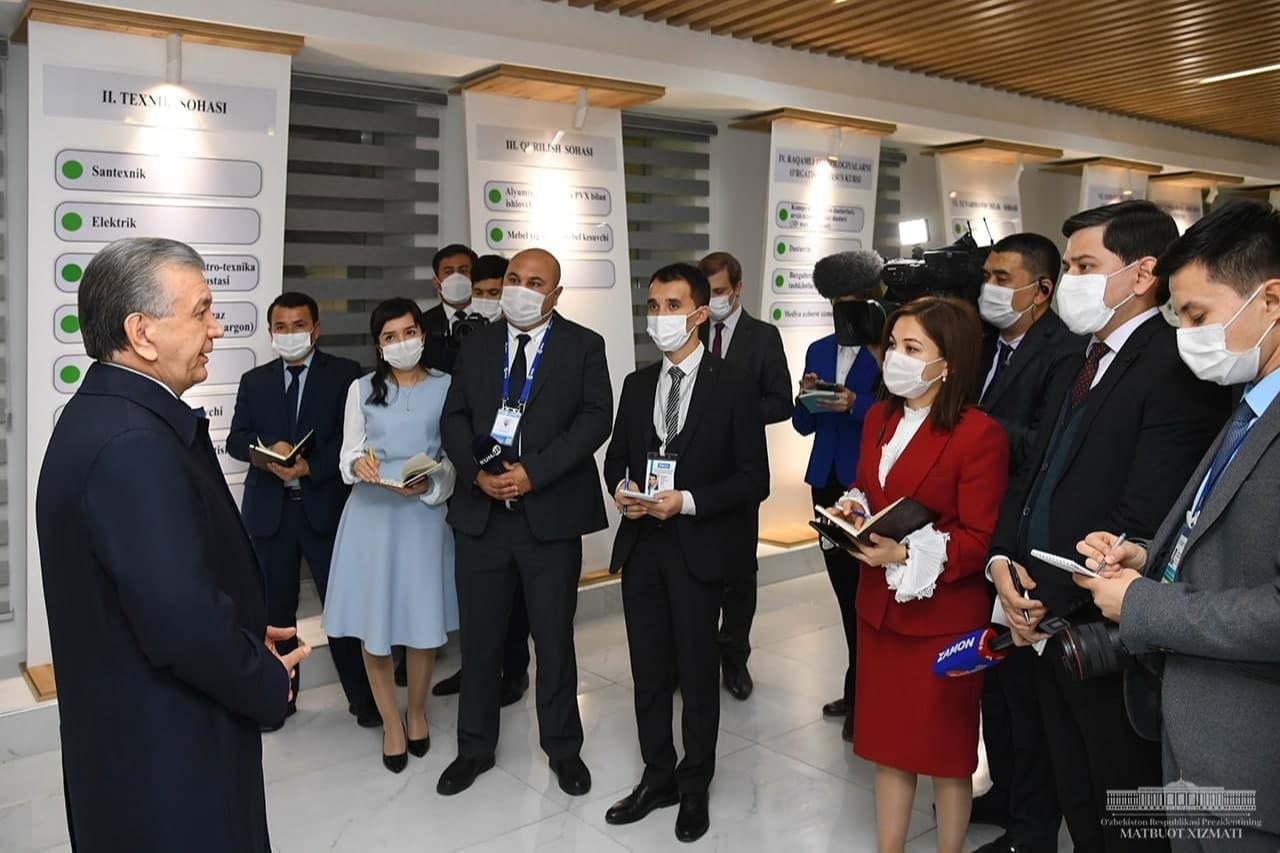 Шавкат Мирзиёев шу ерда оммавий ахборот воситалари вакилларига интервью берди. Давлатимиз раҳбари вилоятга келишдан асосий мақсади, ислоҳотларни амалга оширишда қийинчилик туғдираётган омиллар, Наманганнинг иқтисодий салоҳияти, ишбилармон одамлари ҳақида гапирди.