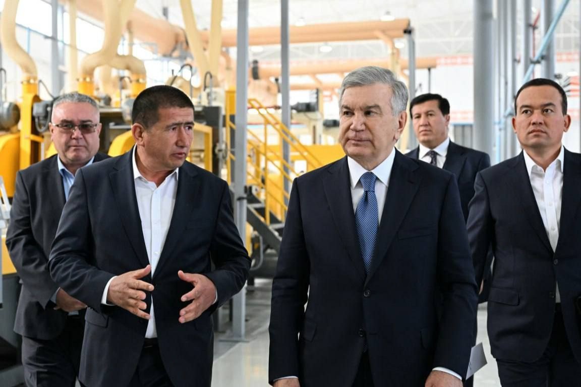 Президент ишлаб чиқариш жараёнлари билан танишар экан, маҳсулотлар сифатини янада ошириш, маҳаллийлаштириш даражасини кенгайтириш ва экспортбоп йўналишларни ривожлантириш муҳимлигини таъкидлади.