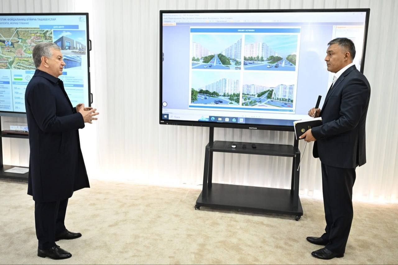 Президентимиз Жиззах шаҳрига кириш қисмини замонавий қиёфага келтириш бўйича мастер-режа ва реновация лойиҳалари тақдимоти билан ҳам танишди.