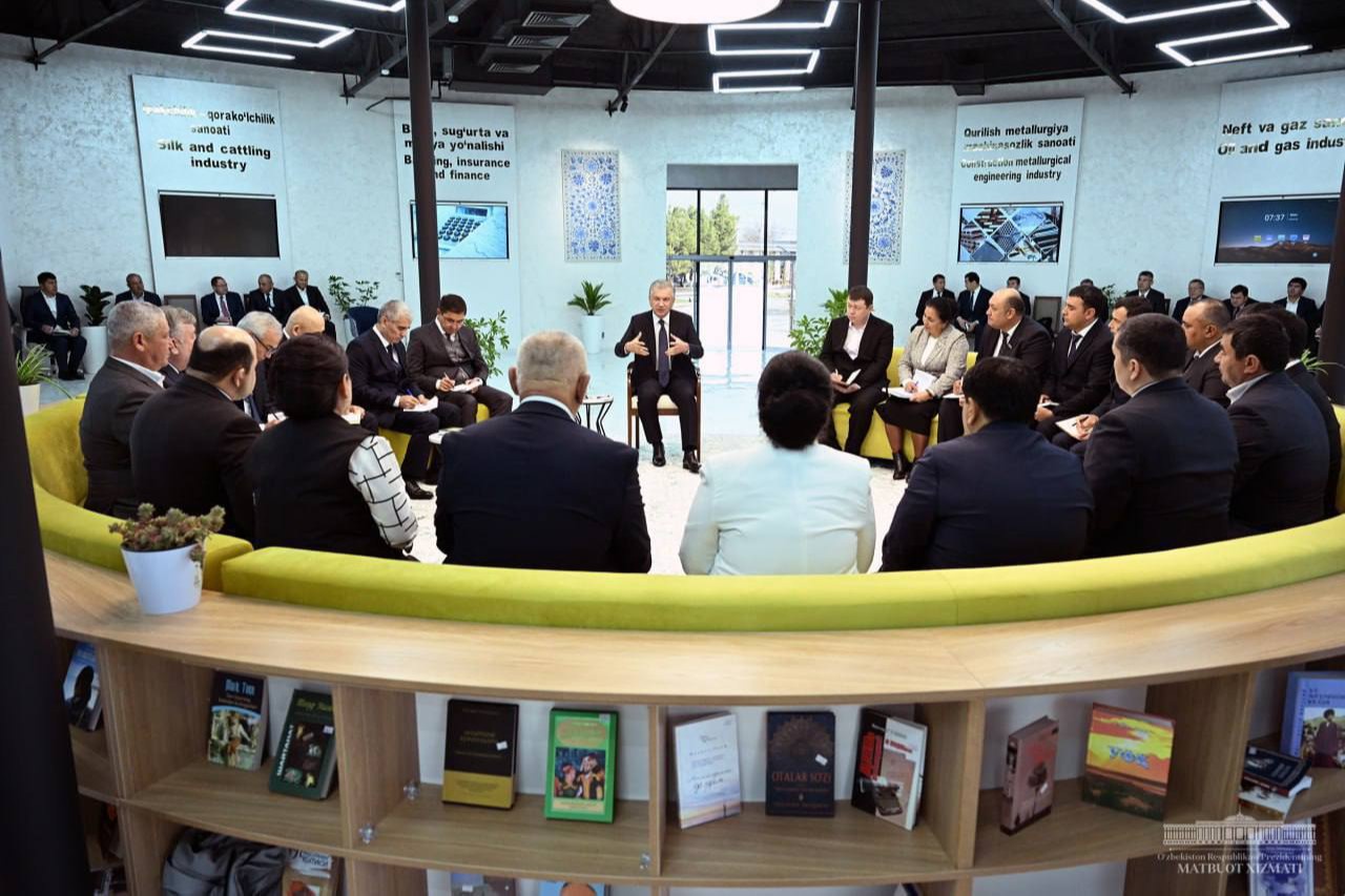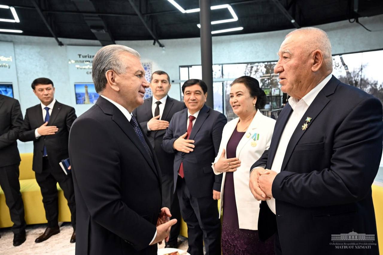 Давлатимиз раҳбари шу ерда бухоролик ҳунармандлар маҳсулотларини кўздан кечирди.