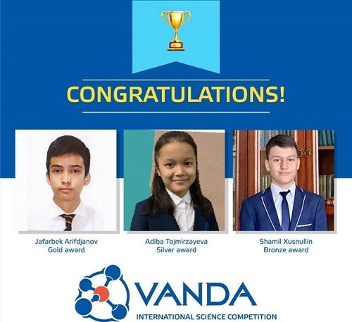 Танловда Тошкент шаҳридаги Президент мактабининг 9-синф ўқувчиси Жафарбек Орифжонов олтин, Наманган шаҳридаги Президент мактабининг 7-синф ўқувчиси Адиба Тожмирзаева кумуш медални қўлга киритди.