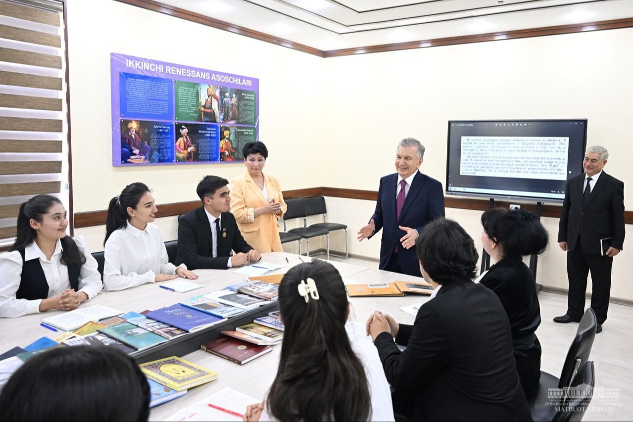Президентимиз дарс жараёнларини кузатди, ўқитувчи ва талабалар билан мулоқот қилди.