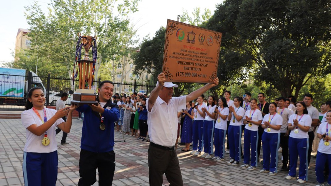 Маълумот ўрнида айтиб ўтиш жоиз, “Универсиада-2020» спорт мусобақаларининг республика финал босқичи бўйича Қорақалпоғистон Республикаси терма жамоаси умум жамоа ҳисобида 3-ўринни эгаллаб, Ажиниёз номидаги Нукус давлат педагогика институтига 80 миллион сўмлик спорт инвентарлар “Президент совғаси” сифатида топширилган эди.