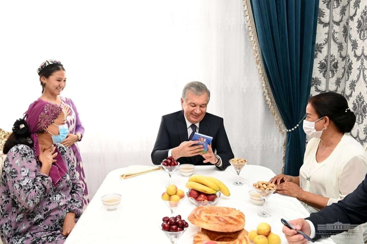 Давлатимиз раҳбари шундай икки оила - Наргиза Раҳимова ҳамда Фарруҳ Эгамовнинг хонадонларида бўлиб, улар билан суҳбатлашди.