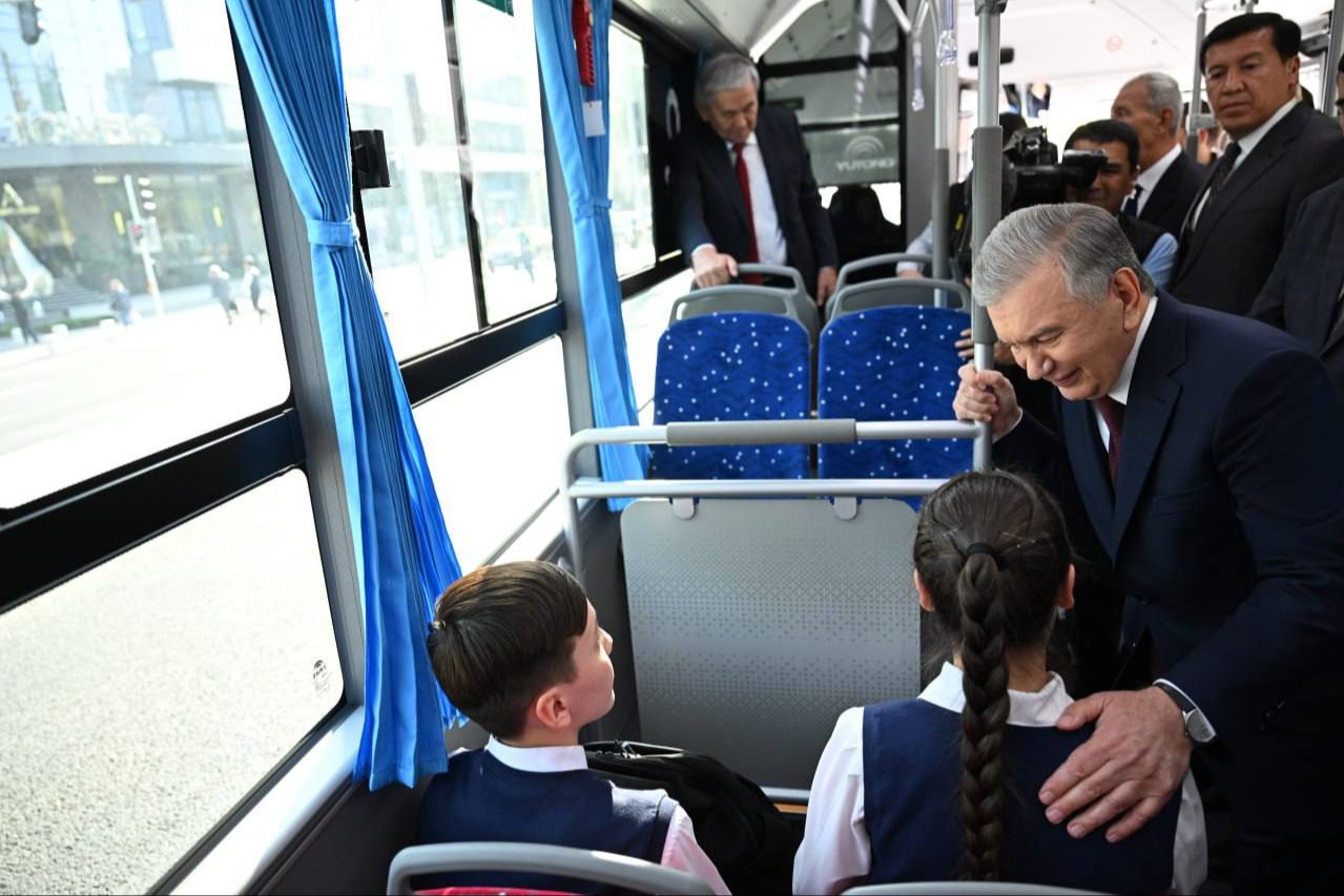 Президентимиз давлат ва жамоат ташкилотлари вакиллари билан биргаликда автобусда юриб, қулайликларни кўрди, йўловчилар билан самимий суҳбатлашди.