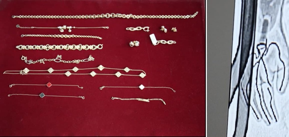 Шундан сўнг, ушбу шахс божхона постидаги боди-сканер қурилмаси орқали кўздан кечирилганида, ўнг қўлига ўрнатилган протез орасига 75 гр. оғирликдаги қиймати 23.6 млн. сўмлик заргарлик буюмлари яширилганлиги фош қилинди.