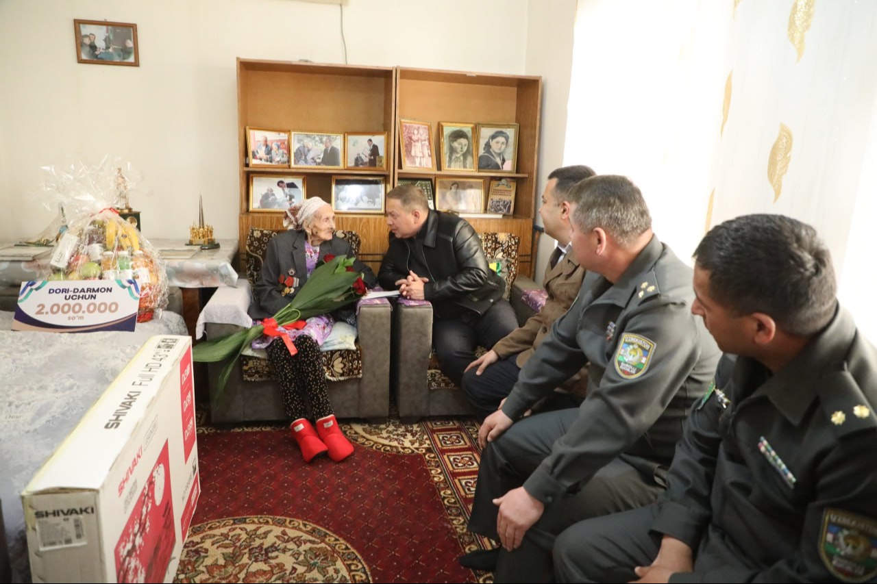 Ташрифлар жараёнида иккинчи жаҳон уруши қатнашчиларини байрам билан табриклаб, ҳол-аҳвол сўралди. Уларга пул мукофотлари, қимматбаҳо совғалар топширилди.