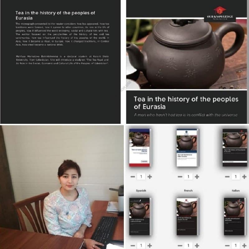 Ушбу тадқиқот доирасида “Евросиё халқларининг чой тарихи” (“Чай в истории народов Евразии”) номли монографиясини Lap Lambert Academic Publishing халқаро нашриётида рус тилида нашр эттирди.