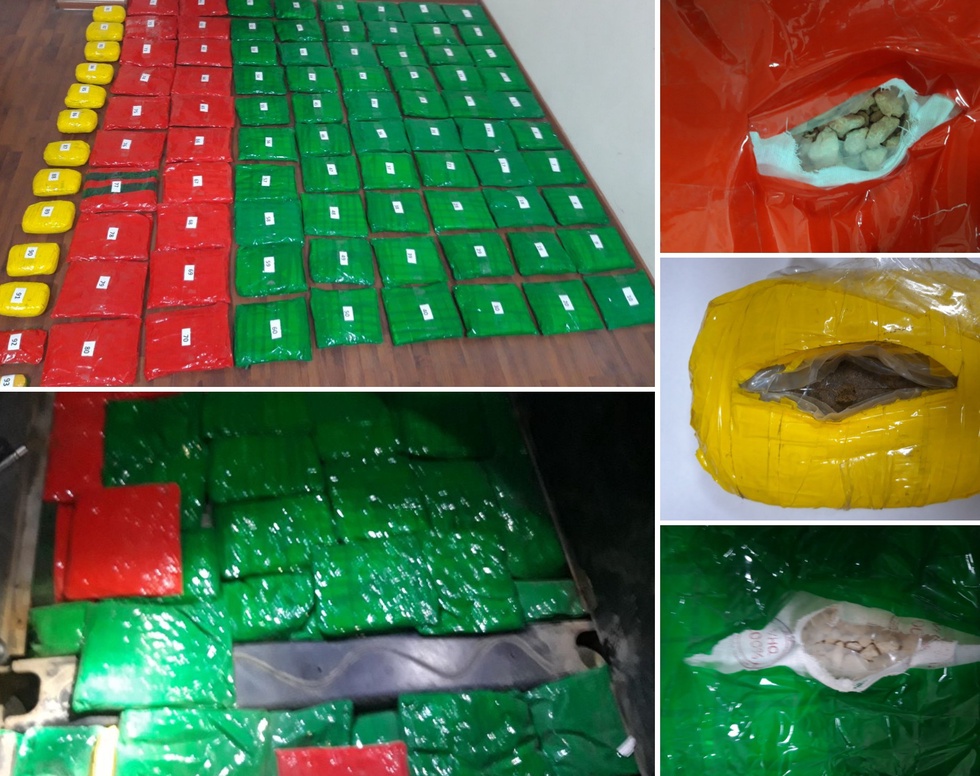 Мазкур ўрамлар белгиланган тартибда очиб кўрилганида эса, яшил ва қизил ранглардаги 82 та ўрамга 85 кг. 505 гр. оғирликдаги “героин” ҳамда 11 дона сариқ рангли ўрамга 11 кг. 425 гр. оғирликдаги гашиш гиёҳвандлик воситаси жойланганлиги маълум бўлди.