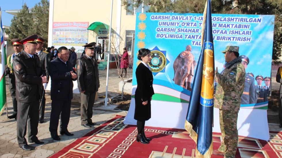 Шунга мувофиқ Қарши шаҳар Мудофаа ишлари бўлими томонидан шаҳримиздаги 1-ихтисослаштирилган умумий ўрта таълим мактаби оталиққа олинди. Шу муносабат билан мазкур мактабга Мудофаа вазирлигининг байроғини тантанали топширишга бағишланган тадбир бўлиб ўтди. Унда вилоят ҳокими Зойир Мирзаев иштирок этди.