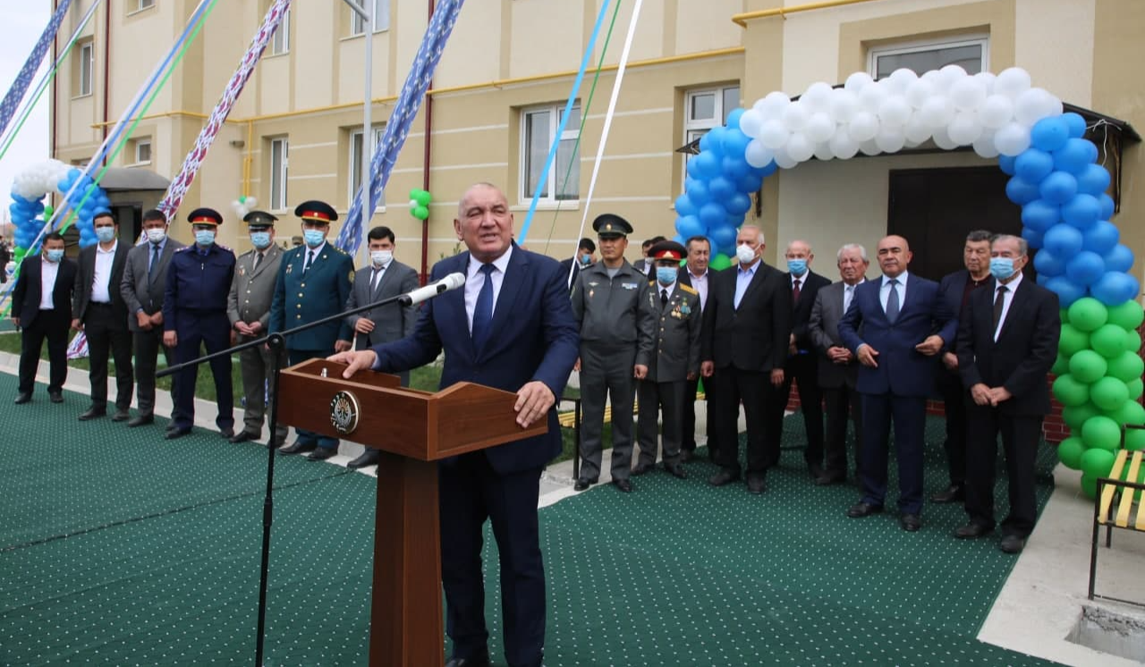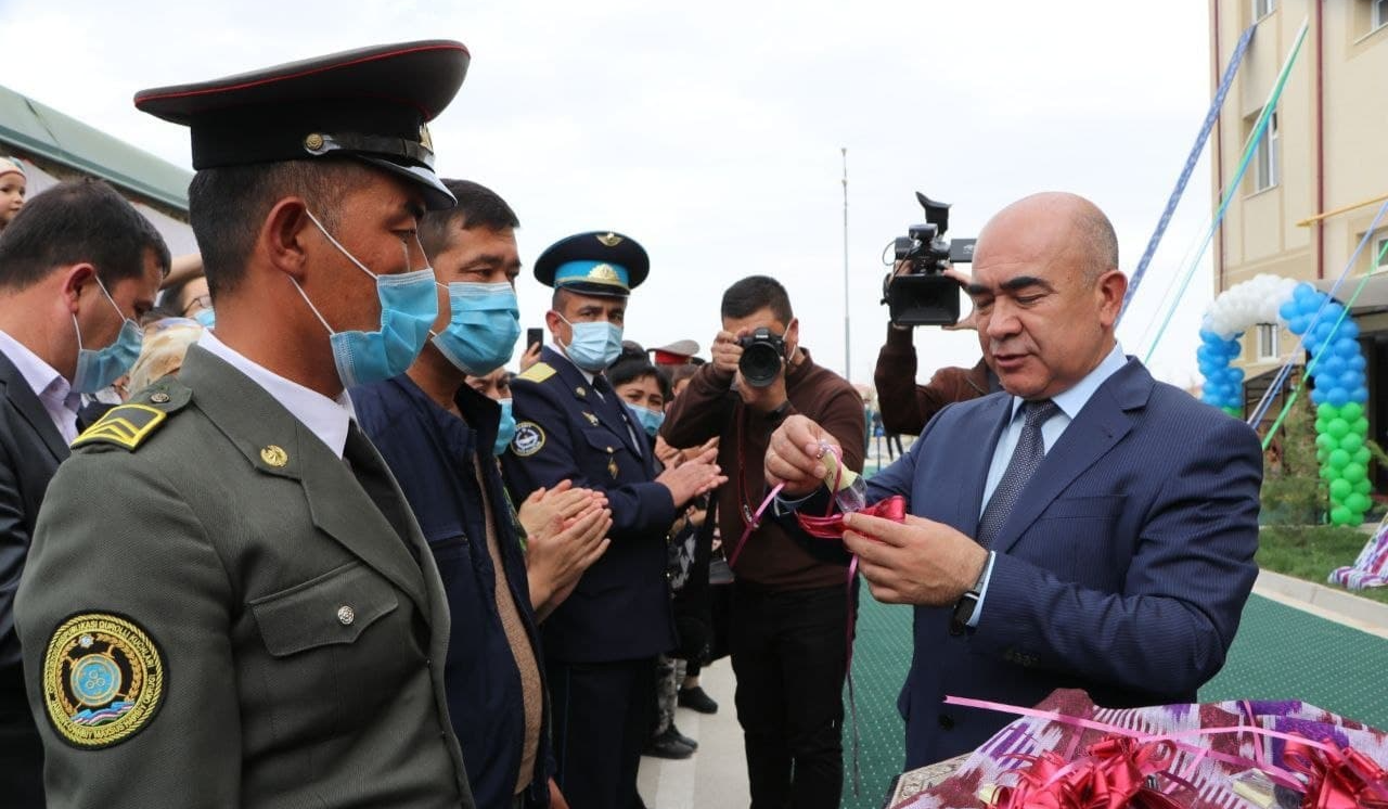 Мудофаа вазирлиги тизимида хизмат вазифасини ўтаётган бир гуруҳ ватан ҳимоячиларининг оиласи бугун қувончга тўлган. Қарши шаҳрида қад ростлаб, 30 та хонадонни ўз ичига олган уй ҳарбий оилаларга топширилди.