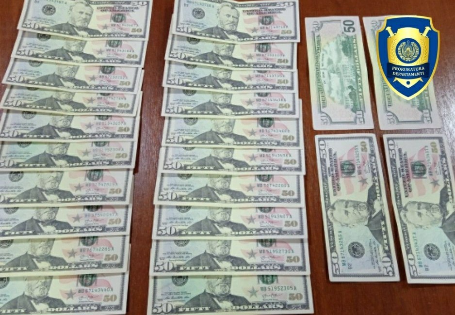 Бош прокуратура ҳузуридаги Департаментнинг Балиқчи туман бўлими томонидан ўтказилган терговга қадар текширувда, фуқаро А.Х. фуқаро Н.М.дан олган 13,4 млн сўм қарзи эвазига нотаниш фуқародан сотиб олган қалбаки 50 АҚШ долларлик купюралар билан ҳисоб-китоб қилиб, жами 1 200 қалбаки АҚШ долларини берганлиги аниқланган.