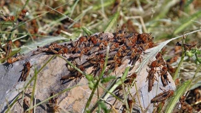 Тасвирдаги чигирткалар маҳаллий ва марокаш турига оид бўлиб, маҳаллий чигиртка экинларга хавф солмайди. Марокаш чигирткасига қарши мавсумда уйғунлашган ҳимоя чора тадбирлари ўтказиб келинади.