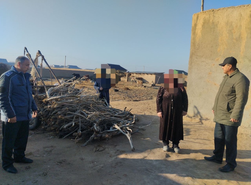 Ўтказилган назорат тадбири давомида туманнинг “Чўлқувар“ МФЙ ҳудудида яшовчи фуқаро (Г.Ҳ) томонидан чўлда ўсадиган саксовул ўсимлигини ноқонуний кесганлиги аниқланди.