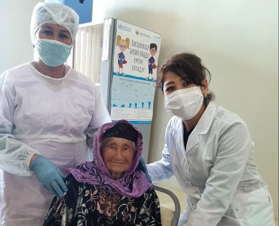 Қашқадарёлик 91 ёшли онахон коронавирусга қарши эмланди