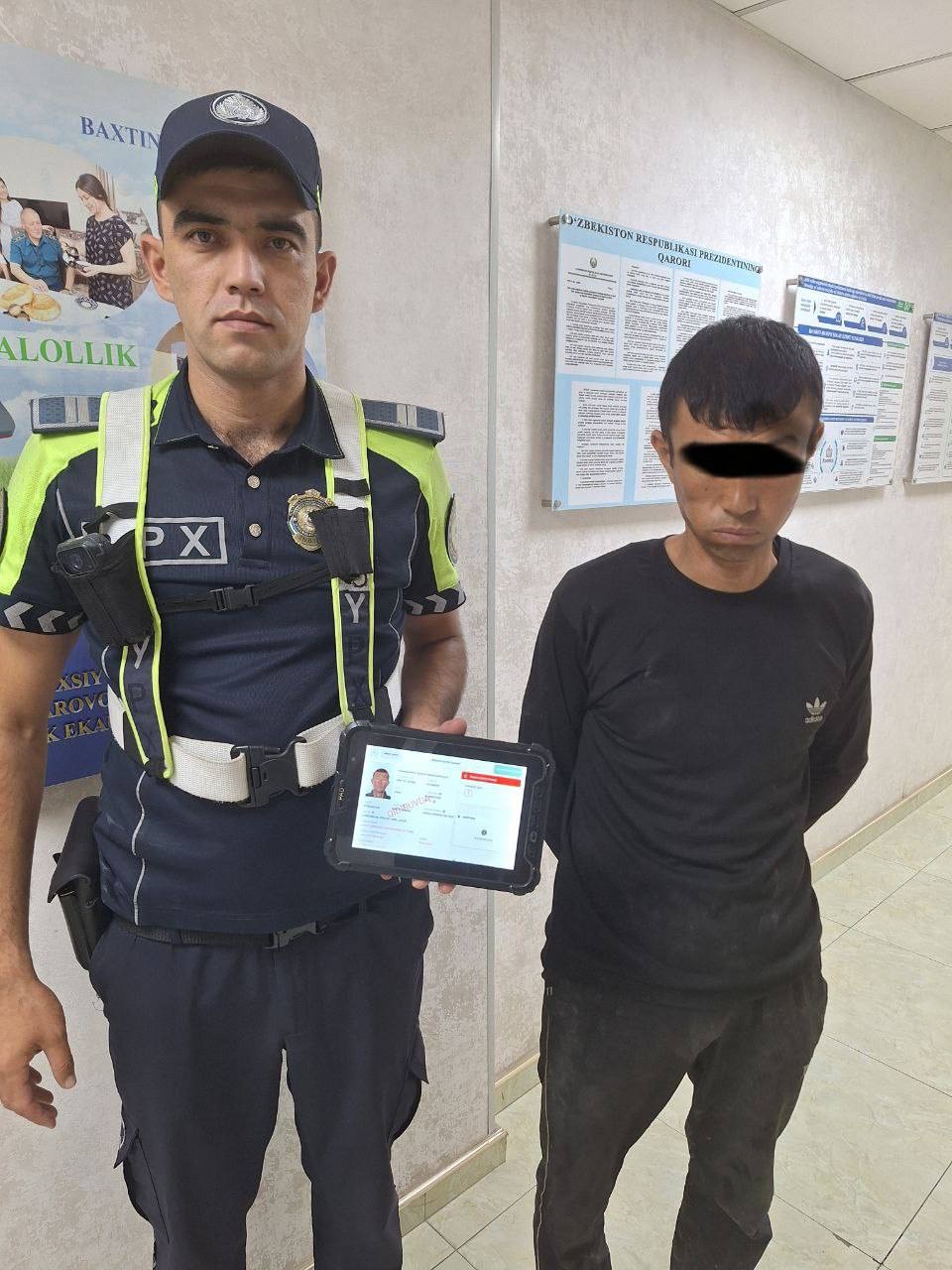 Шу йилнинг 15 июль куни соат 03:40 ларда Тошкент шаҳар, Сергели туманида хизмат олиб бораётган ЙПХ инспекторлари кичик сержант Б.Акромов ва катта сержант С.Исроиловлар томонидан "Чанганг" русумли автомобиль тўхтатилиб, ҳайдовчи, 1988 йилда туғилган Р.Ж.нинг маълумотлари текширилганда, ушбу фуқаро Ўзбекистон Республикаси Жиноят Кодексининг 164 моддаси 2 қисми билан гумонланиб қидирувда эканлиги аниқланди.