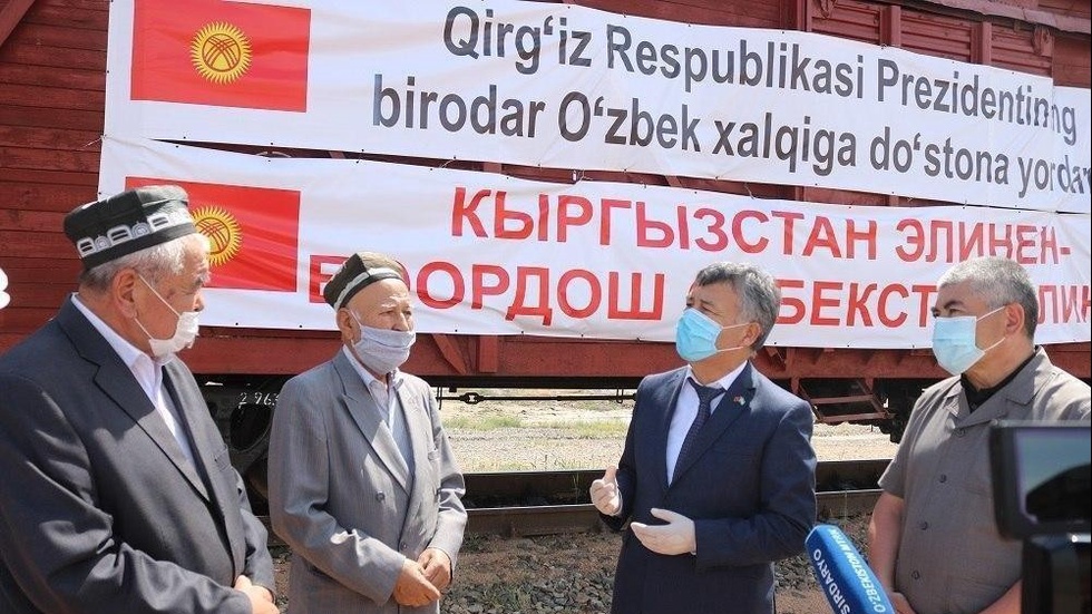 Инсонпарварлик ёрдами ортилган поезд Қирғиз Республикасининг Ўзбекистондаги элчиси И.Жунусов ва Қирғизистон Фавқулодда вазиятлар бўйича вазирлигининг вакили кузатуви остида Янгиер шаҳрининг “Yangi-Yangiyer” темирйўл станциясига етиб келди.