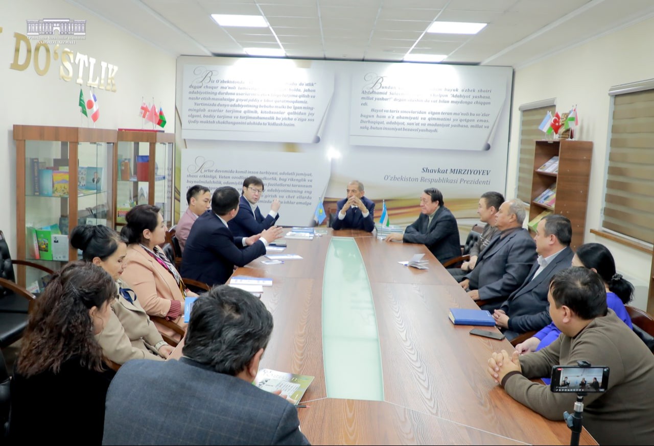 Шундан сўнг меҳмонлар ва Ўзбекистон Ёзувчилар уюшмаси, “Sharq yulduzi”, “Звезда Востока”, “Yoshlik”, “Jahon adabiyoti” журналлари жамоалари ўртасида давра суҳбати бўлиб ўтди. Самимий гурунг давомида ўзаро тажриба алмашиш, ўзбек-қозоқ адабий алоқаларни мустаҳкамлаш борасида фикрлар тингланди.