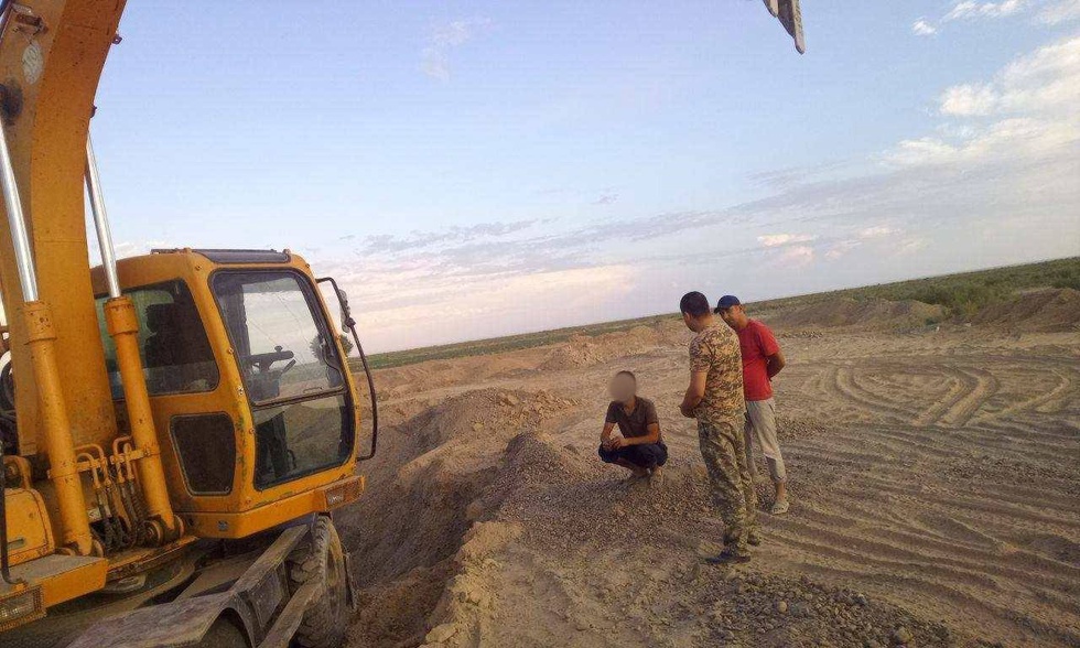 Рейд тадбири давомида Шофиркон тумани Ғалаба чўл массиви ҳудудидан фуқаро Т.Ш томонидан ноқонуний тарзда қум-шағал аралашмасини қазиб олаётганлиги ҳолати аниқланди.