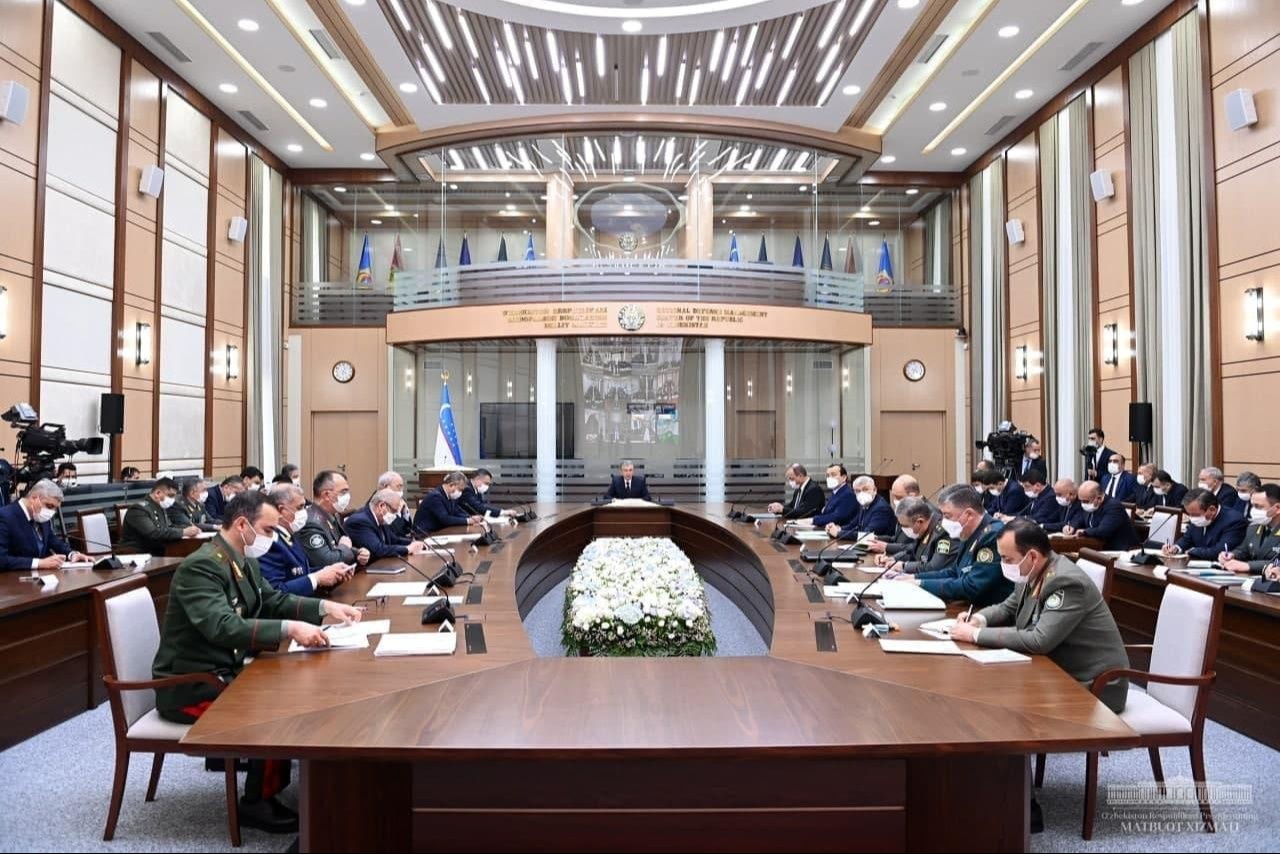 Йиғилишда Хавфсизлик кенгаши аъзолари, ҳарбий-маъмурий секторлар раҳбарлари сўзга чиқди. Мамлакатимиз мудофаа қобилиятини янада мустаҳкамлаш бўйича чора-тадбирлар белгиланди.
